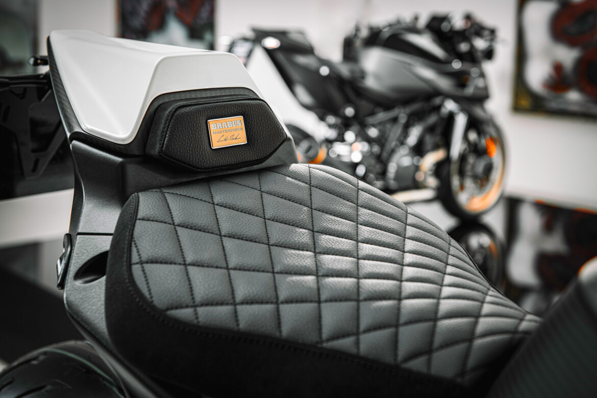 Perfectly in tune with the design’s sporty, aggressive flair, the final variant of this extra limited-edition Masterpiece has undergone a stunning transformation for an unparalleled experience on the road. Should you dare to ride this rarity, the all-new padded backrest adorned for the very first time by the exclusive BRABUS Masterpiece badge ensures an undeniable 1-Second-Wow effect, underscored by the feel of the impeccable BRABUS Fine Leather. The bespoke heated seat has been reupholstered with excellent attention to detail by the interior design specialists of the BRABUS saddlery to feature the exquisite BRABUS "Diamond Rising" stitching pattern.