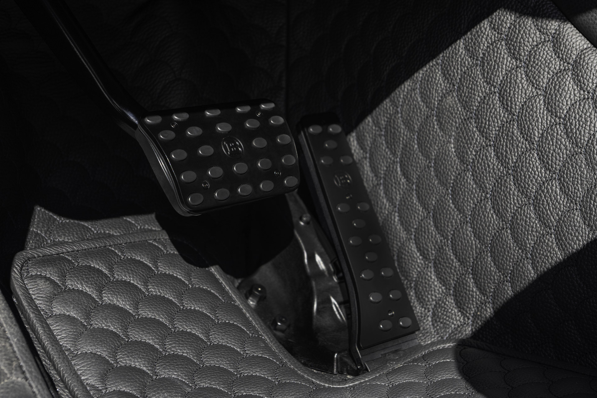 Refined down the last detail, the luxurious all-black Masterpiece design impresses with its impeccable finish, complete with special BRABUS “Seashell Diamond” quilting and perforations applied with pinpoint precision around the entire cabin including the seats, trim elements and the foot wells, which are likewise upholstered in the finest leather. Matching black piping and stitching adds intriguing detail.