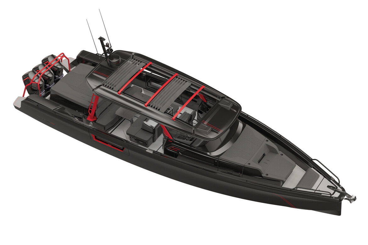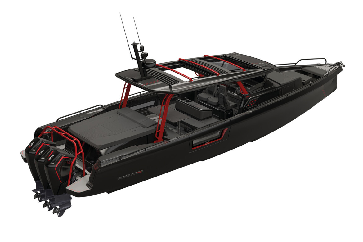 18.01.2025 - The all-new BRABUS Shadow 1200 Cross Top model, optionally available as Black Ops Signature Edition, is the latest newcomer to the exclusive Shadow 1200 range of 45-footers, boasting a peak performance output of 1,200 horsepower, adaptive drivability and premium comfort inspired by the BRABUS “Masterpiece” design philosophy. This powerhouse makes a bold statement on the waves: redefining next-level style and luxury while keeping you connected with the elements, guaranteeing adrenaline-fueled rides no matter where your journey takes you.