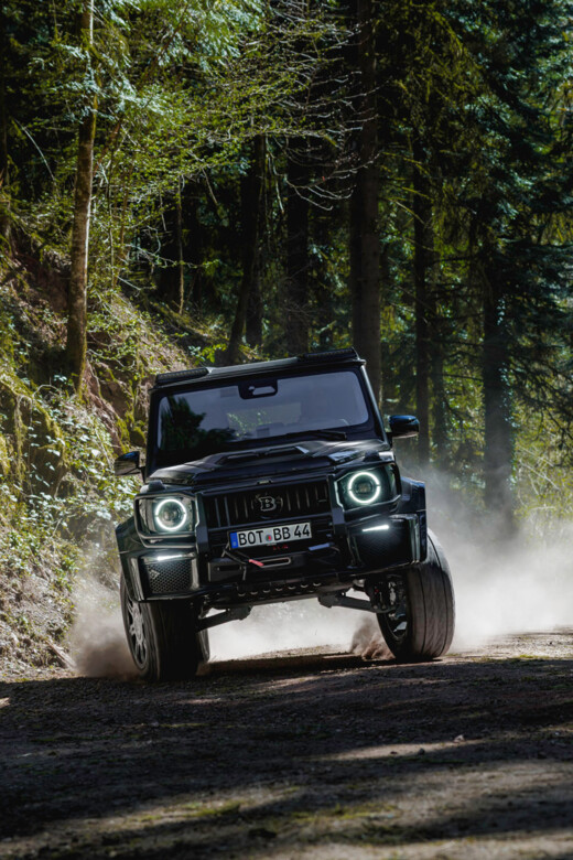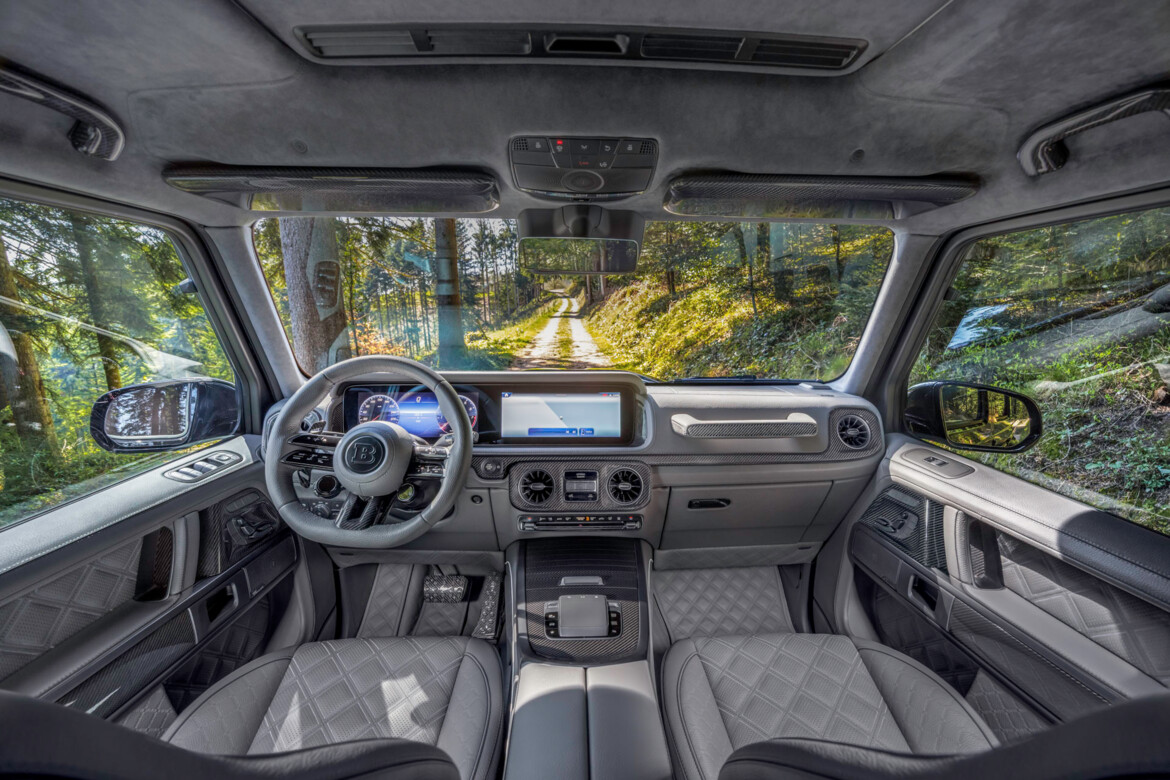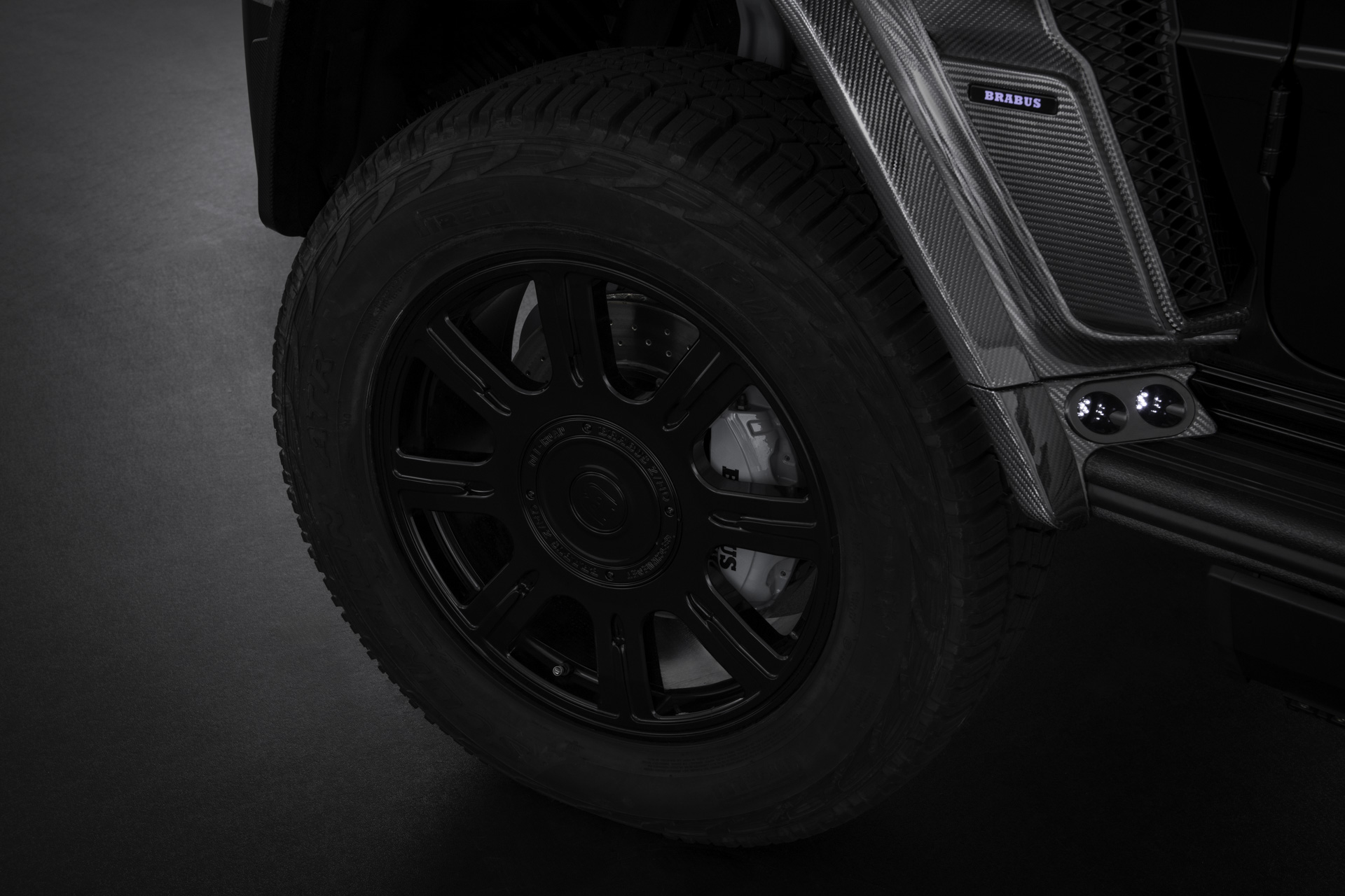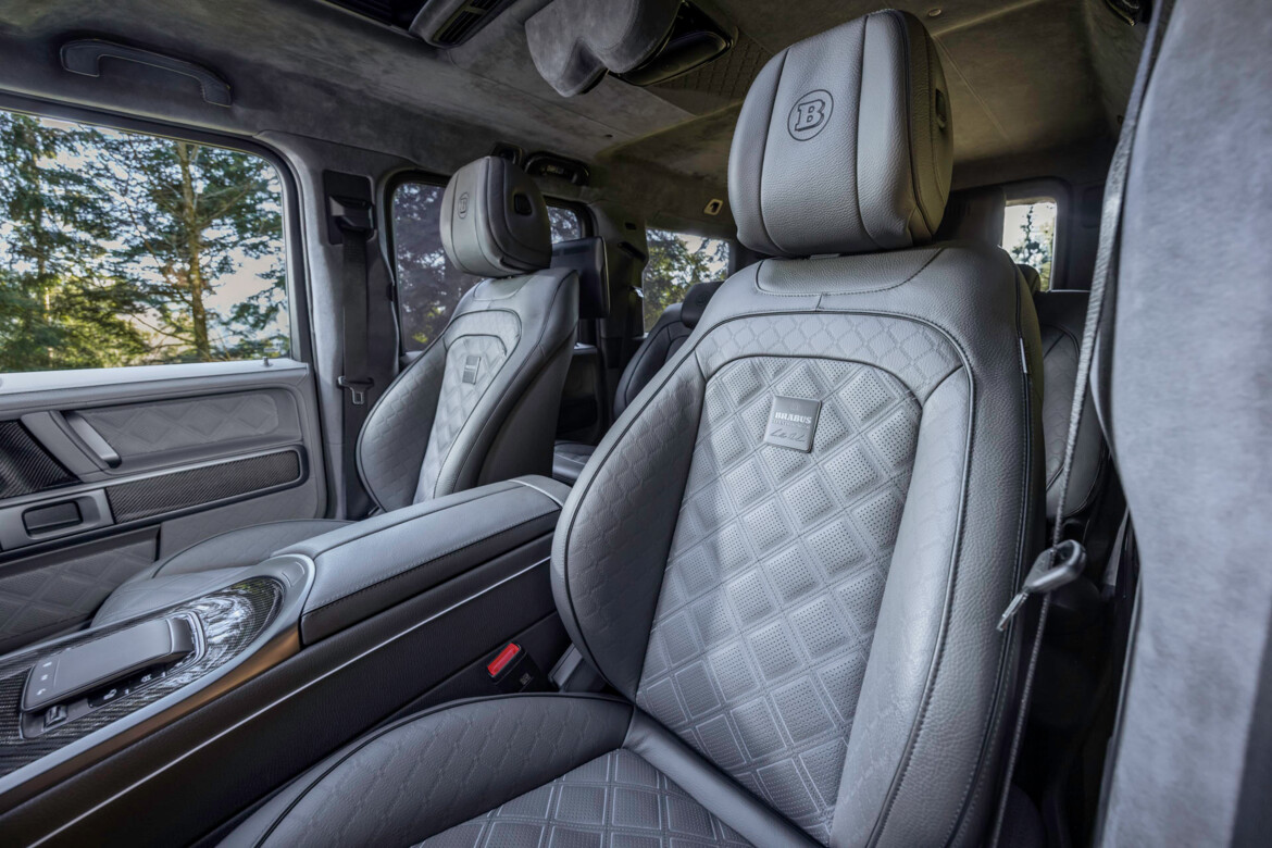 Auf beiden Fahrzeugseiten setzt sich das BRABUS Carbon-Paket mit Aufsätzen hinter den vorderen und hinteren Radläufen genauso fort wie mit den Seitenleisten und den Spiegel-Covern aus Sicht-Carbon. Um das Offroad-Supercar leichter und sicherer entern und wieder verlassen zu können, gibt es spezielle, elektrisch ausfahrende BRABUS Trittstufen: Ein weiteres Komfortfeature sind die speziellen BRABUS „Easy Entry“ Scharniere, mit denen sich die hinteren Türen bis zu 90 Grad weit öffnen lassen und somit den Fondpassagieren einen bequemeren Zu- und Ausstieg ermöglichen.