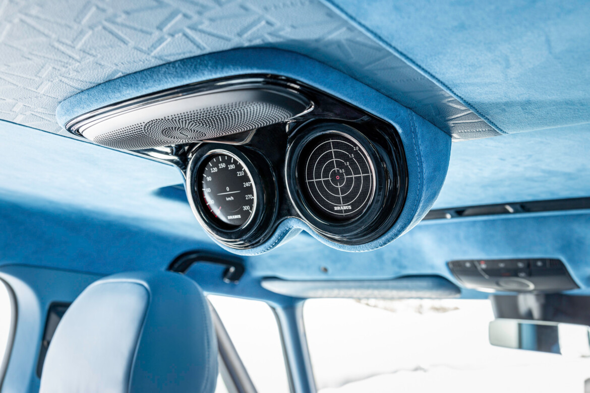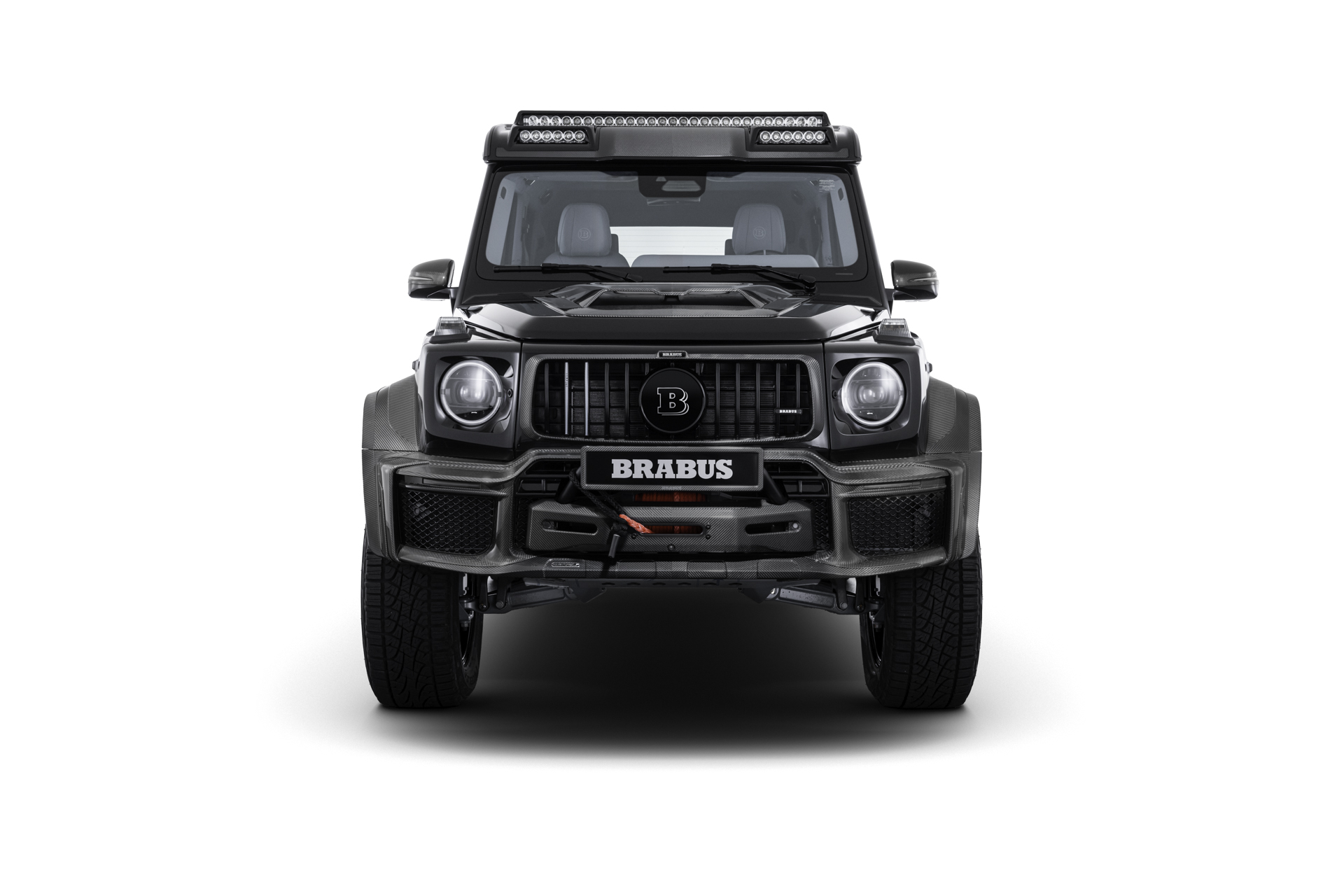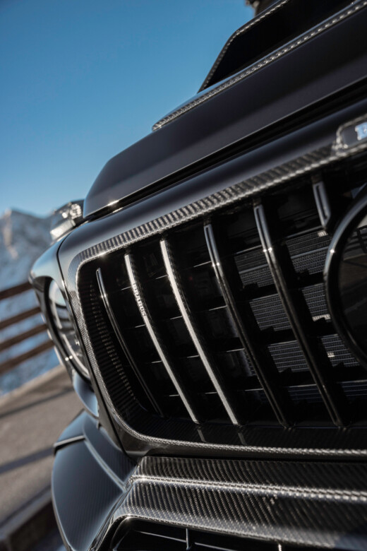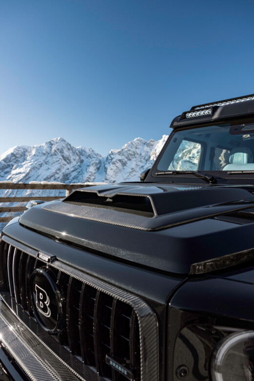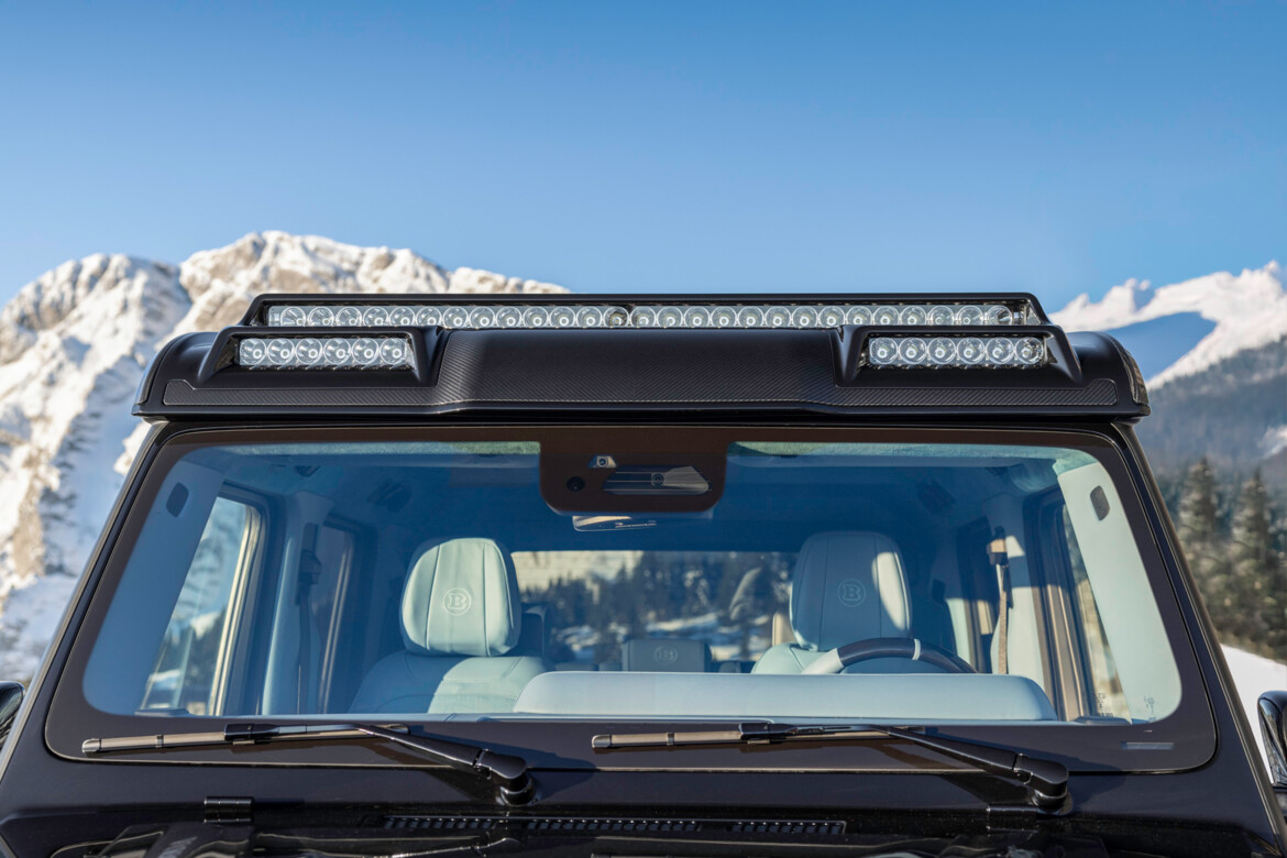 Zum Carbon-Konzept gehören auch die BRABUS Powerdome-Motorhaube, die Seitenspiegel-Cover, die seitlichen Karosserieleisten sowie der BRABUS Windabweiser für den Gepäckträger auf dem Dach, der mit seinen drei leistungsstarken LED-Panels bei Dunkelheit jedes Terrain taghell ausleuchtet.