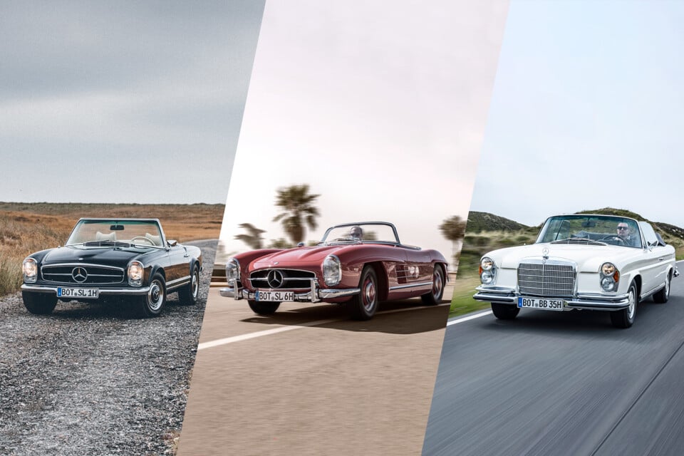 The three highlight models include the Mercedes-Benz 280 SL Pagoda, the Mercedes-Benz 280 SE 3.5 Cabriolet and the Mercedes-Benz 300 SL Roadster.