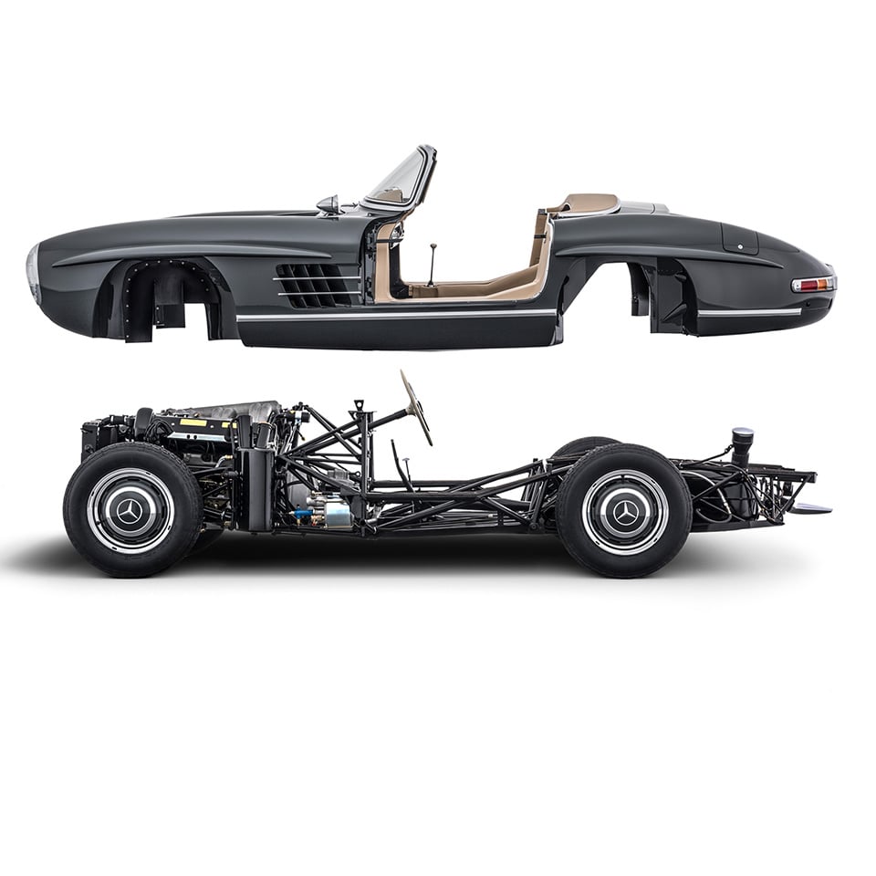 The beauty is brought back to life with the utmost precision and conscientious dedication: from complete chemical paint stripping to careful engine and gearbox overhaul, from elaborate interior renovation, cathodic dip coating of the bodywork as in modern production vehicles and comprehensive rust prevention to the final paint job. Once all the work steps have been completed, the classic Mercedes shines again in its former glory.