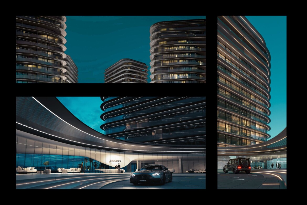 The architecture fuses contemporary, minimalist architectural silhouettes with the striking, progressive brand character of BRABUS, standing as a bold addition to Abu Dhabi’s skyline and an undeniable visual statement.